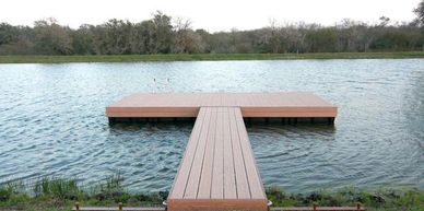 The 20 ft. x 10 ft. aluminum framed deck comfortably accommodates up to 8 adults who are actively fishing and has a weight capacity of approximately 1,800 pounds. Our aluminum docks are great for smaller bodies of water with consistent water levels. If the water level in your pond or lake fluctuates more than 4 feet, check out our floating steel docks.